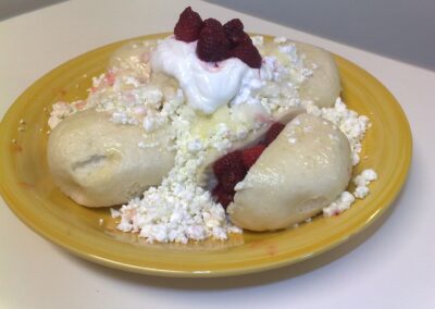 Naše firma vyrábí poctivé a chutné houskové knedlíky, bramborové knedlíky, špekové knedlíky, karlovarské knedlíky a také knedlíky bramborové plněné masem. Zabýváme se samozřejmě výrobou specialitek, jakými jsou např. halušky, bramborové taštičky se špenátem nebo povidly, a také chutné ovocné knedlíky s kusovým ovocem.